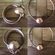 Copper Sphere on 22 inch Leather Necklace weighs 51.4 grams. Sphere measures 48mm.